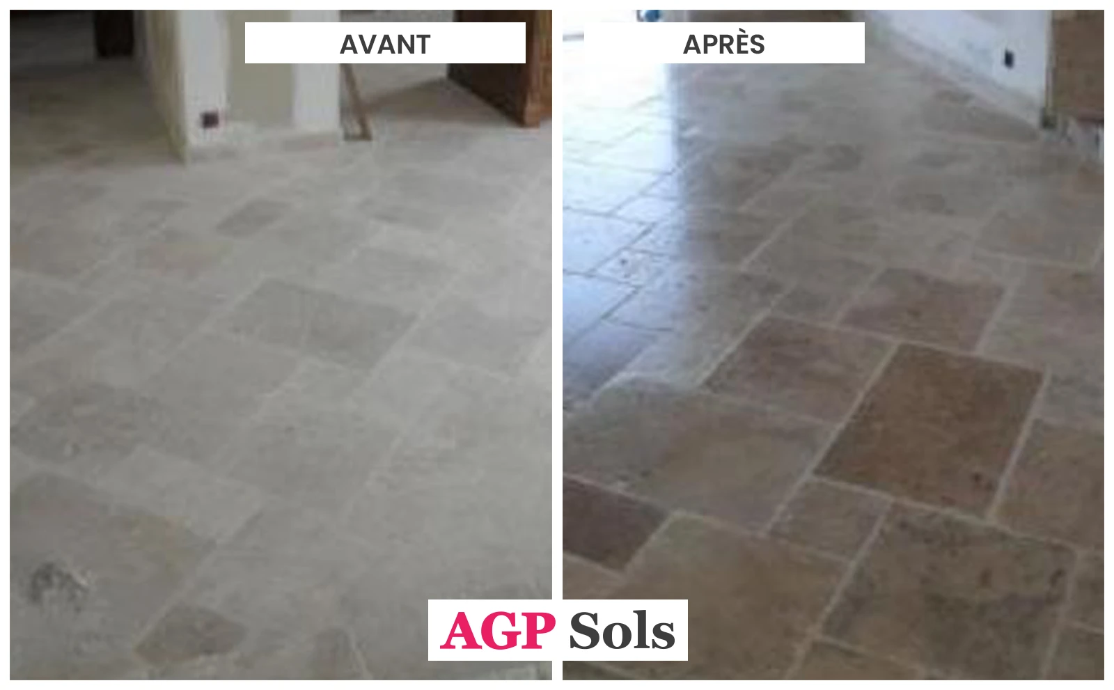 Nettoyage de pierre naturelle (travertin) aprés pose à NIce (06).
