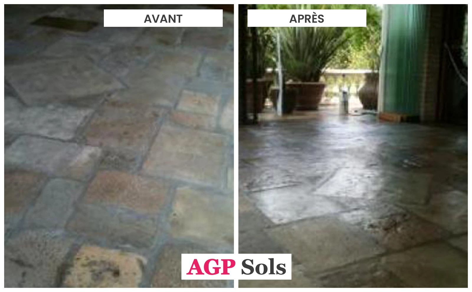 Nettoyage décapage sol extérieur en pierres et traitement avec une résine.