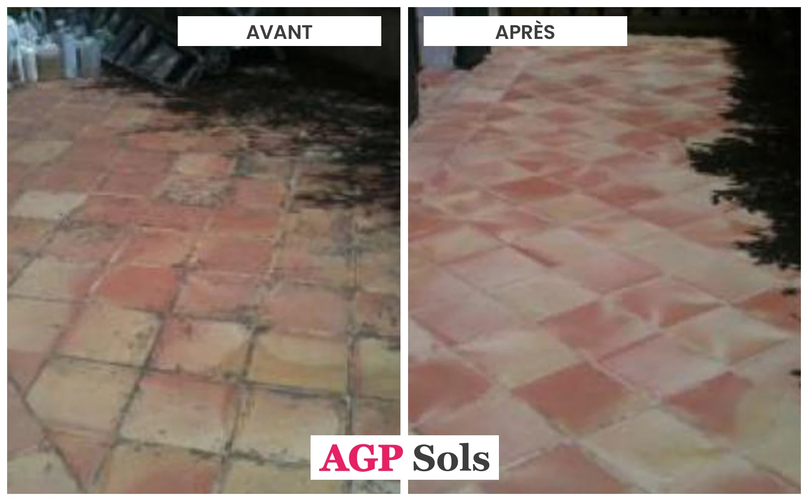 Nettoyage d’une terrasse extérieure en terre cuite à Antibes (06).