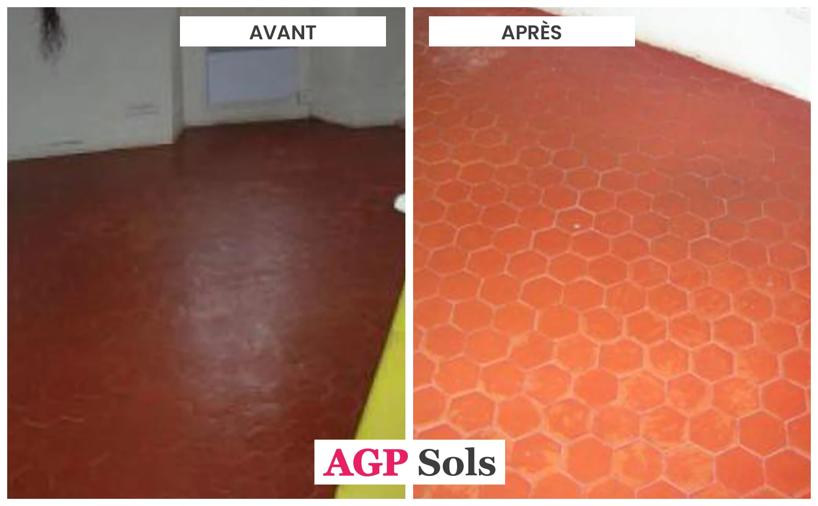 Décapage du sol en tomettes et traitement avec cire satinée à Cagnes sur Mer (06).