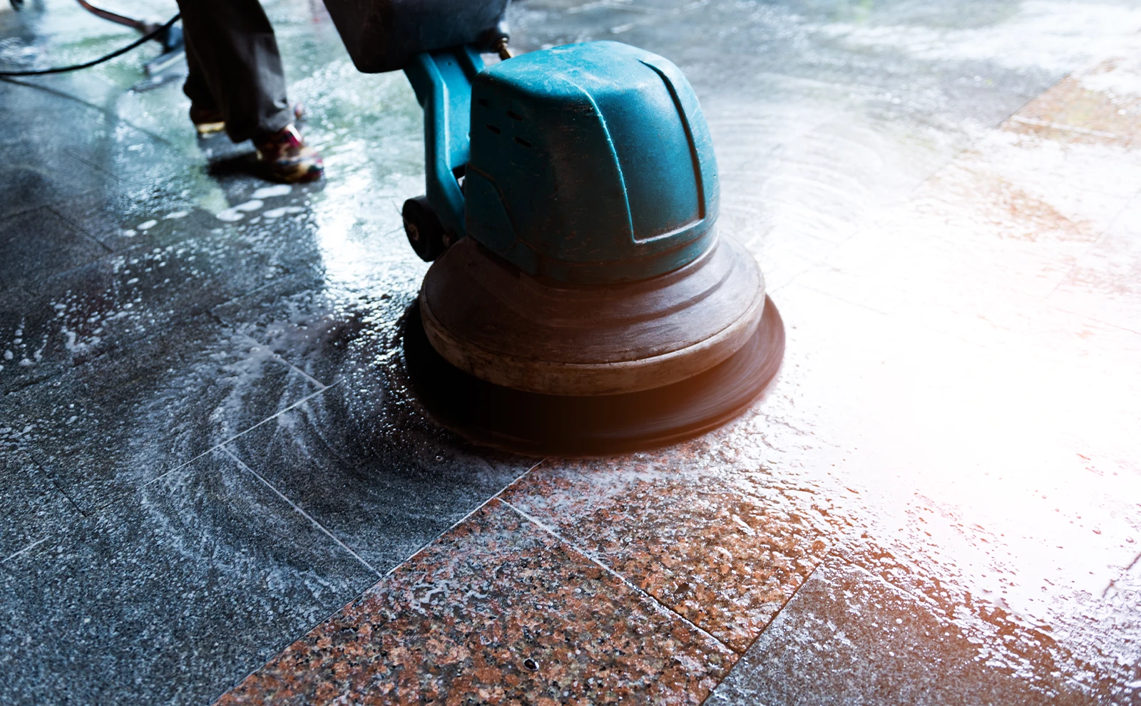 Nous redonnons à votre sol tout son éclat (à l’aide d’une monobrosse et de produits adapter).