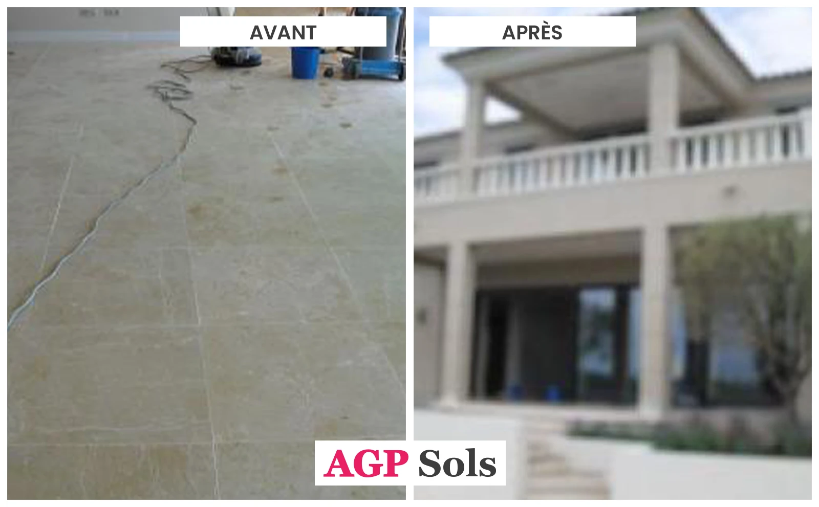 - Nettoyage des sols à la monobrosse et traitement de la pierre,