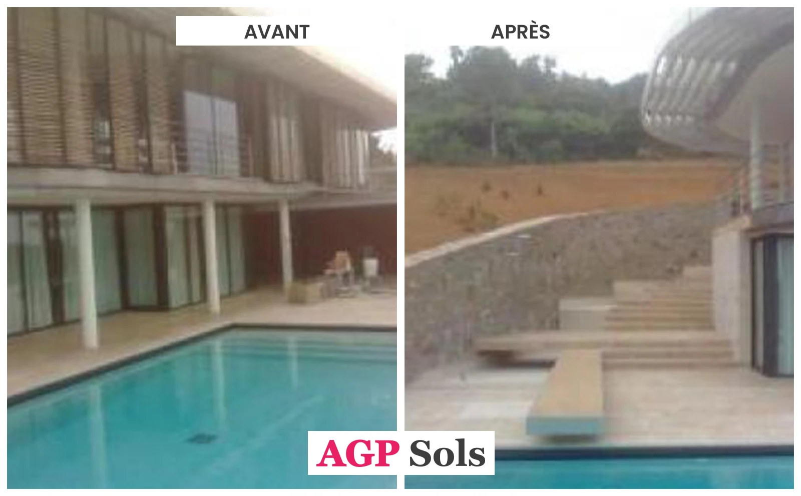 Nettoyage fin de chantier et traitement du sol en pierre dans une villa à Grasse (06).