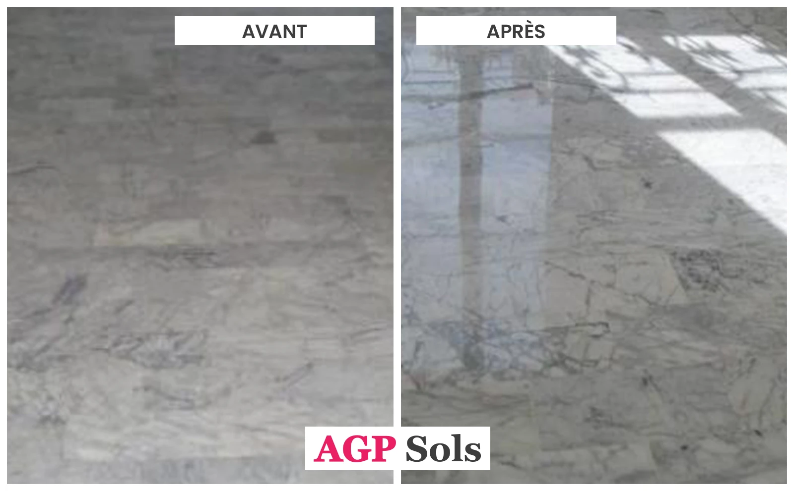 Ponçage passages succesifs avec des diamants (disques abrasifs) ce qui permet d’enlever les rayures, taches,…