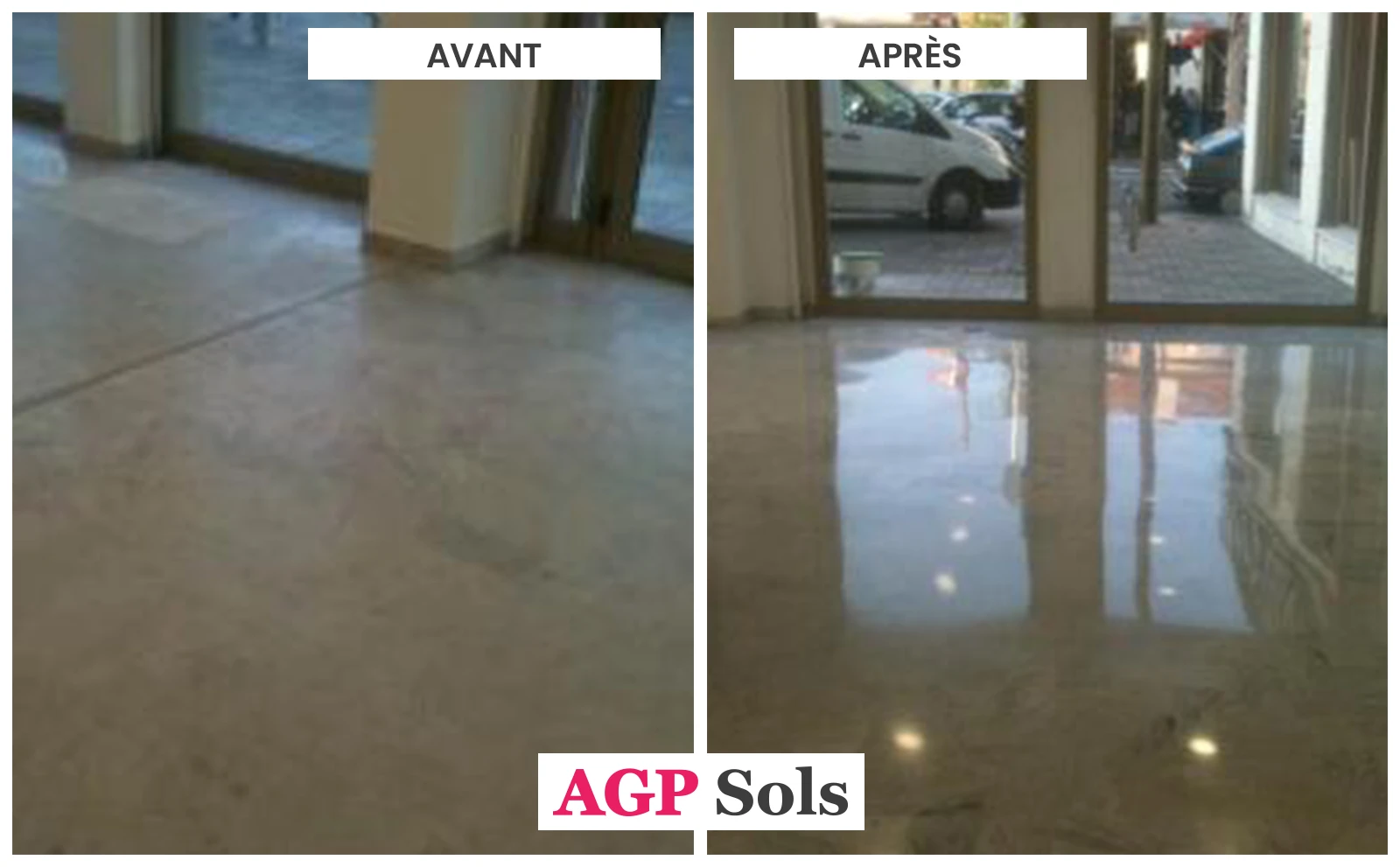 Ponçage obligatoire quand le marbre vient d’être posé car il y a des différences de niveaux entre les dalles (redents).